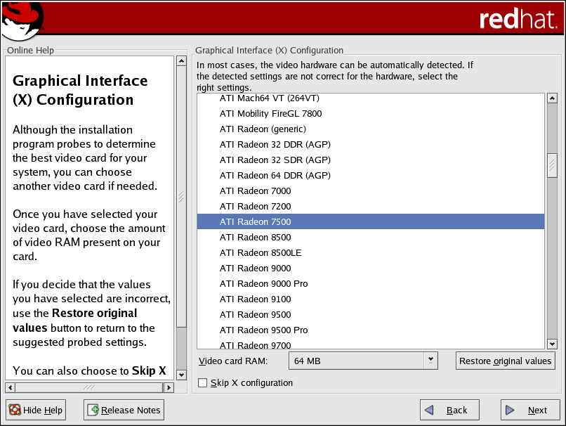 You can also select Skip X Configuration if you would rather configure X after the installation or not at all.