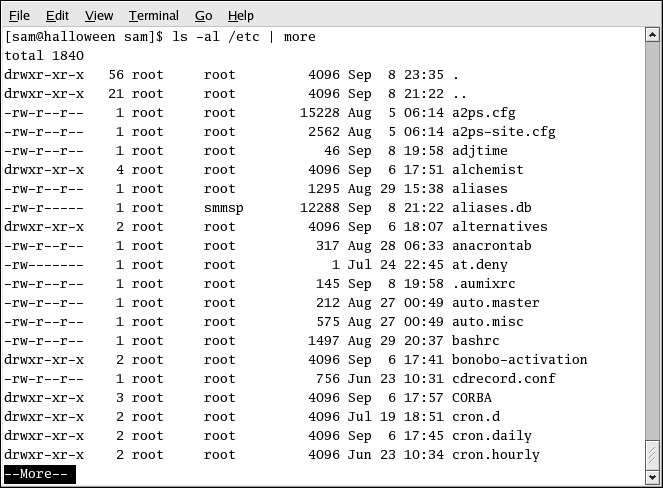 ls -al /etc | more |